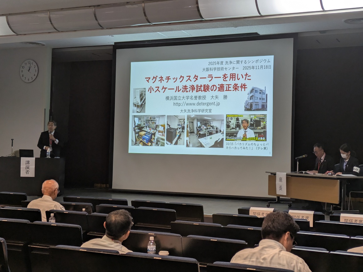 11月17日-18日に大阪科学技術センターにて洗浄に関するシンポジウムがあり、参加してきました。写真は発表の場面(幹事の方に撮影していただいたもの)、会場の建物、そして御堂筋。もう少し暗くなるとイルミネーションがきれいなんでしょうが、新幹線の時間もあり速攻で帰宅。