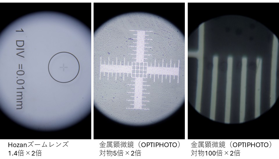 金属顕微鏡の整備中ですが、元のハロゲン光源では色々やってみてもどうしても明るさが不足しています。そこで、顕微鏡用のLEDスポットライトで補助光を足してやるとちょっと改善。ただスポットライトの位置が不安定で実用向きではありません。そこで思いついたのがスポットライトの光源をそのまま顕微鏡光源の代替にするという方法。写真のようにAS3000というLED光源を顕微鏡の光源ボックスの部分においてやると問題解決です。100倍対物レンズ×2倍Extenderで撮影すると0.01mm間隔がくっきり。1µm程度の細菌類ならおそらく観察可能ですね。